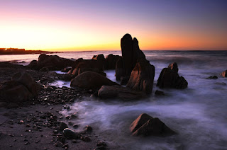 delight, a soft pink light transformed the atmosphere of the beach. I enjoy photographing seascapes as they will not only produce beautiful images,
